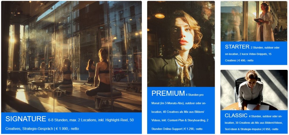 Wir begleiten dich stundenweise, einen halben oder ganzen Tag durch dein Leben. Ob im Studio, im Alltag, bei Events oder beim Kaffee mit deinen Kund*innen - wir halten dabei authentische Momente fest, die sich perfekt für deine Website, Social Media Stories, Reels und Posts eignen. ✔️ Wir liefern nicht nur Fotos, sondern auch Textideen, Content-Vorschläge und Upload-Support. ✔️ Du hast weniger Stress mit der Content-Produktion für deine Kanäle. ✔️ Professionalität und Deadlines sind für uns besonders wichtig. Umgekehrt erwarten auch wir Pünktlichkeit in der Kommunikation. Wir kontaktieren dich nach Abschicken des Formulars für ein Erstgespräch. Das Erstgespräch ist kostenlos, dauert 20 min. und findet online statt.