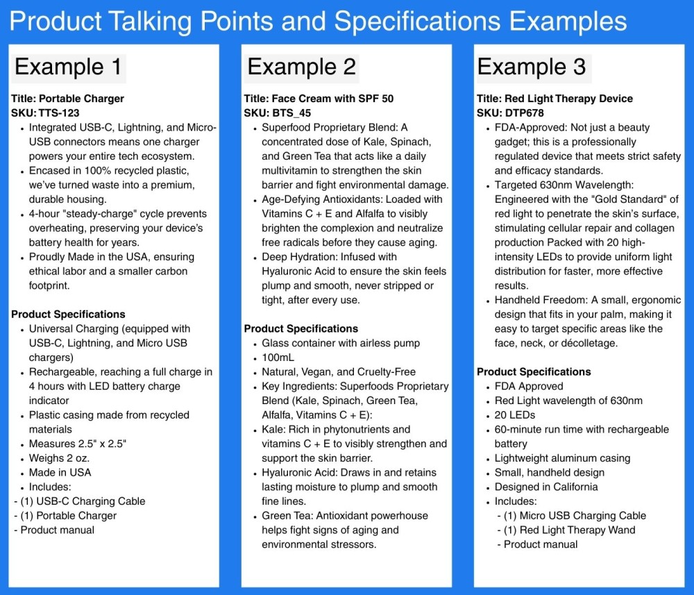 Product Talking Points and Specifications